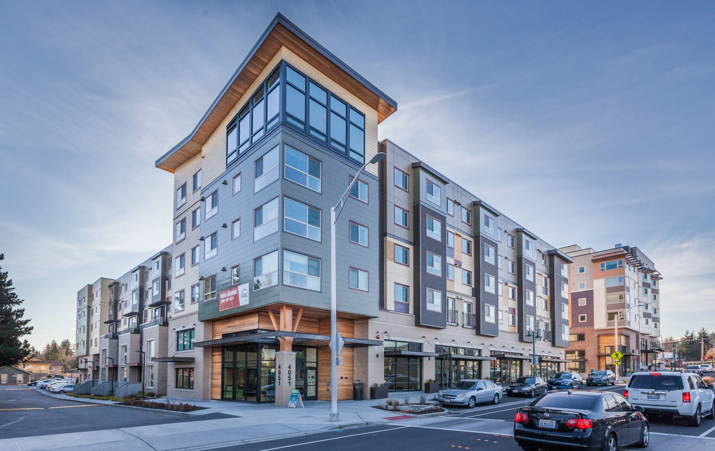 Vengryn Exteriors gets called when general contractors are looking to really impress clients with a variety of finishes. This building had about 75,000 sqft worth of exteriors cladding. Our expert crew worked with 4 different exteriors finishes to produce this result!